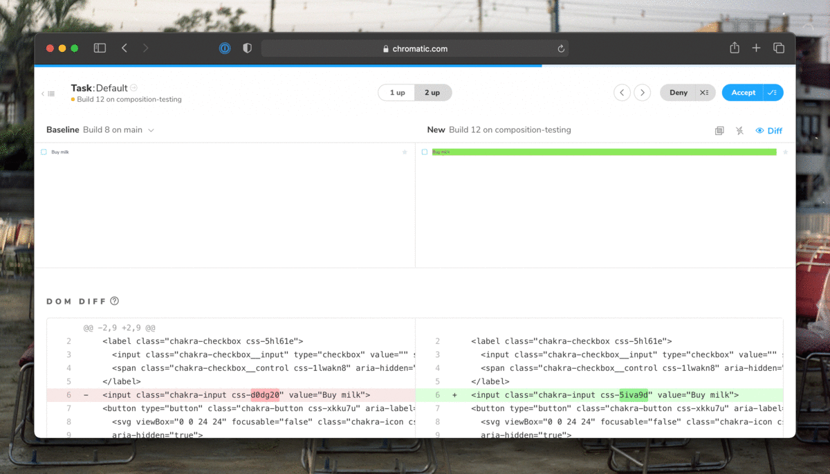 이제 Task 컴포넌트에서 폰트 크기나 배경색 같은 것들을 변경해보세요. 그런 다음 commit하고 크로마틱을 다시 실행해봅시다.